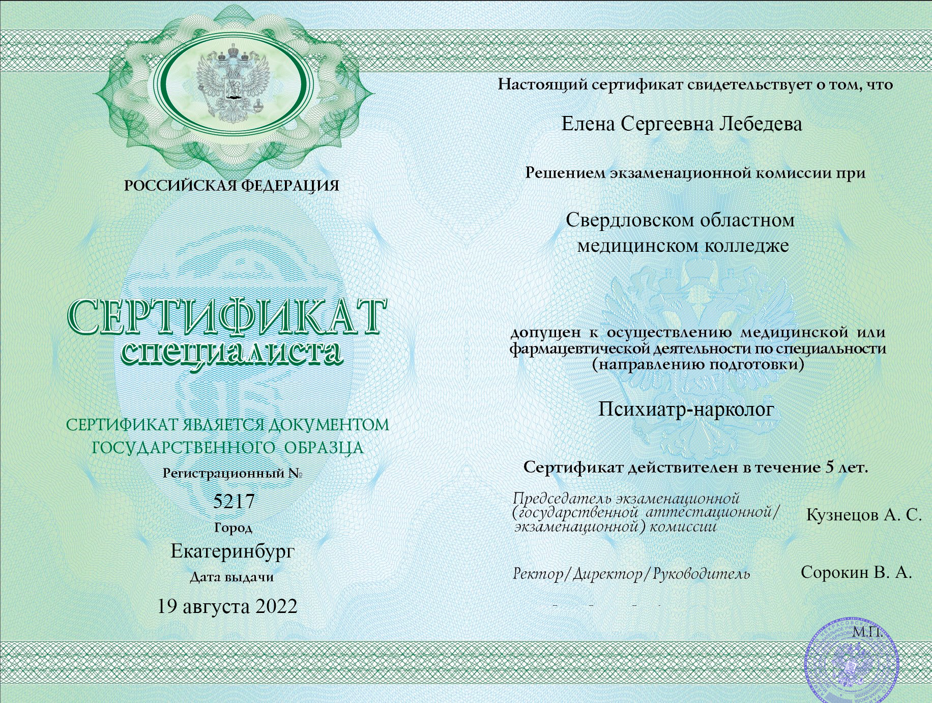 Елена Сергеевна Лебедева врач нарколог клиники доктора Стукаловой в Белогорске Крым